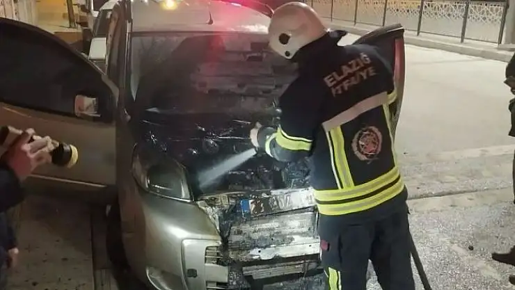 Elazığda park halindeyken bir anda motor kısmından alev alan hafif ticari araç, itfaiye ekiplerinin müdahalesiyle söndürüldü.Ola