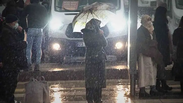 Meteoroloji 13´üncü Bölge Müdürlüğünün kuvvetli yağış uyarısının ardından Elazığ´da sağanak yağış etkili oldu. Yoğun yağış nedeniyle bazı noktalarda su birikintileri oluşurken, sürücüler yollarda temkinli seyretmeye çalıştı. Şemsiyesi olan vatandaşlar ıslanmaktan korunurken, hazırlıksız olan bazı vatandaşlar ise ıslanmaktan kurtulamadı. Meteoroloji ise sel, su baskınları ve ulaşımda meydana gelebilecek aksamalara karşı vatandaşları uyardı.