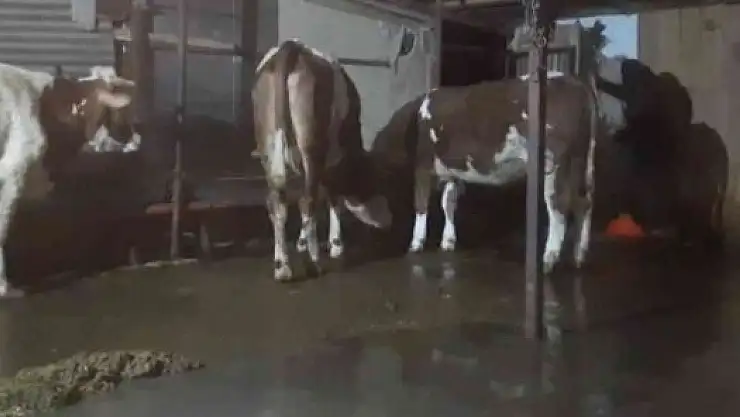 Sağanak yağışın etkili olduğunu belirten Özer, "Yoldan gelen tüm su ahırda doldu. Bazı hayvanları bu yağışta dışarı çıkardık. Her tarafa su doldu. Kendi çabamızla dışarı atmaya çalıştık. Gece boyu su atmakla uğraştık" dedi.
