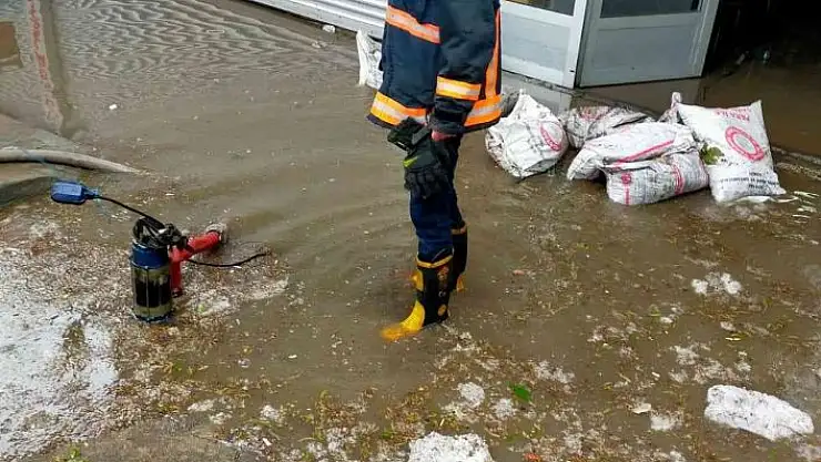 Elazığ´da etkisini gösteren sağanak yağış sonrasında kentteki bazı iş yerlerini su bastı.