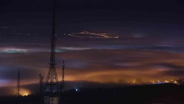 Elazığ kent geneli sis denizinde kaybolurken, sisin gece ışıklarıyla birlikte görünüşü görsel şölen oluşturdu.