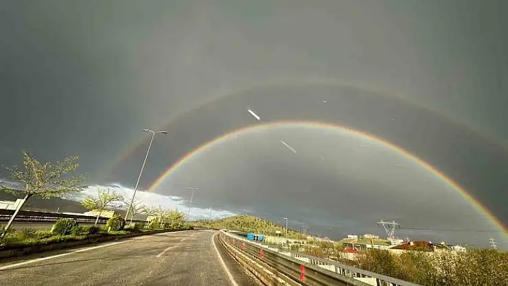 Elazığ´da yağmur sonrası ortaya çıkan gökkuşağı izleyenleri hayran bıraktı.