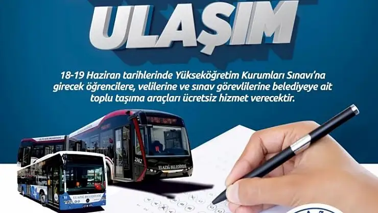 Elazığ Belediyesi, 18-19 Haziran tarihlerinde yapılacak olan Yükseköğretim Kurumları Sınavlarına (YKS) girecek öğrenciler için ücretsiz ula