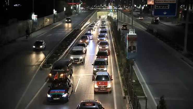 İHH Elazığ Şubesi tarafından Azerbaycan´a destek vermek amacıyla `Gardaşlık Zamanı´ sloganıyla araç konvoyu düzenlendi. Bosna Hersek Bulvarı üzerinde bulunan vakıf önünde toplanan vatandaşlar araçlarını Türk ve Azerbaycan bayraklarıyla donattı. İstasyon Caddesi´nden başlayarak araçlar Gazi, Zübeyde Hanım ve Malatya caddelerinde kornalar eşliğinde şehir turu yaptı. Çayda Çıra Kavşağı´nda konvoya diğer sürücüler de kornalarıyla destek vererek eşlik etti. Daha sonra tur, başladığı yerde son buldu.