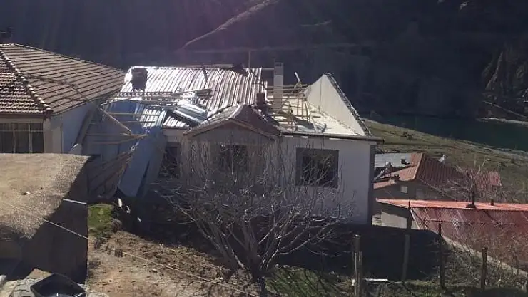 Elazığ´ın Keban ve Ağın ilçelerinde fırtına nedeniyle bazı evlerin çatıları uçtu.