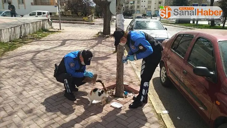 Korona virüs tedbirleri kapsamında sokağa çıkanların azalmasıyla yiyecek bulmakta zorlanan hayvanları polis düzenli olarak beslemeye başladı.
