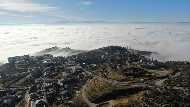 Sabah saatlerinde etkili olan ve yer yer görüş mesafesini 3 metreye kadar indiren sis, güneşin de yüzünü göstermesiyle birlikte tarihi Harput Mahallesi´nde eşsiz manzaralar ortaya çıkardı. Kent merkezi sis denizinde kaybolurken, dron ile çekilen görüntüler görsel şölen oluşturdu.