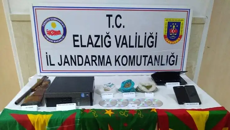 Şüphelilerin evlerinde yapılan aramada, 2 adet cep telefonu, 2 adet sim kart, 1 adet laptop, 5 adet DVD, 2 adet kitap, 2 adet sözde flama, 1 adet ruhsatsız av tüfeği, yaklaşık 100 gram toz esrar ve 300 gram kenevir tohumu ele geçirildi.
