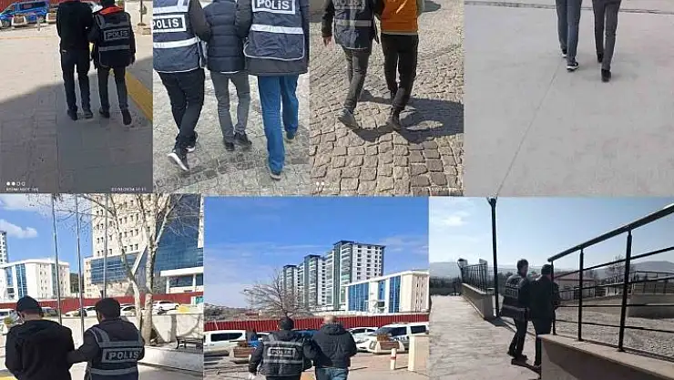 Elazığ Cumhuriyet Başsavcılığı koordinesinde İl Emniyet Müdürlüğü Asayiş Şube Müdürlüğü tarafından kesinleşmiş hapis cezası ile aranan şahısların yakalanmasına yönelik çalışma gerçekleştirildi. Yapılan çalışmalarda, 6136 ve birden fazla kişi ile birlikte yağma suçundan 20 yıl 1 ay hapis cezası bulunan 1 şahıs, 6136 sayılı Kanuna muhalefet ve uyuşturucu madde kullanmak suçundan 13 yıl 5 ay hapis cezası bulunan 1 şahıs, hırsızlık suçundan 11 yıl 2 ay, 5 yıl, 4 yıl 5 ay, 4 yıl 3 ay, 4 yıl 2 ay, 4 yıl, 3 yıl 2 ay ve 1 yıl 8 ay hapis cezası bulunan 8 şahıs, kasten yaralama suçundan 14 yıl 4 ay, 8 yıl 2 ay, 3 yıl 4 ay hapis cezası bulunan 3 şahıs, uyuşturucu madde ticareti yapmak suçundan 4 yıl 2 ay hapis cezası bulunan 1 şahıs, cinsel istismar suçundan 2 yıl 6 ay hapis cezası bulunan 1 şahıs, Vergi Kanununa muhalefet suçundan 3 yıl 4 ay hapis cezası bulunan 1 şahıs, nitelikli dolandırıcılık suçundan 2 yıl 6 ay hapis cezası bulunan 1 şahıs, uyuşturucu madde kullanmak suçundan 2 yıl 2 ay ve1 yıl 8 ay hapis cezası bulunan 2 şahıs olmak üzere kesinleşmiş hapis cezası ile aranan 19 şüpheli şahıs tespit edilerek yakalandı. Şahıslar, emniyetteki işlemlerinin ardından sevk edildikleri adli makamlarca tutuklanarak cezaevine gönderildi.