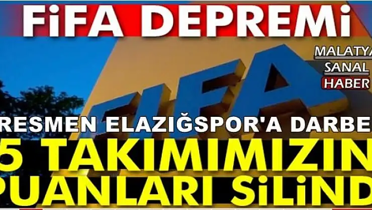 FIFA, TFF 1. Lig ekiplerinden 5 kulübe puan silme cezası verdi. Elazığspor aldığı 12 puan silme cezası ile -2 puanla son sıraya demir attı.