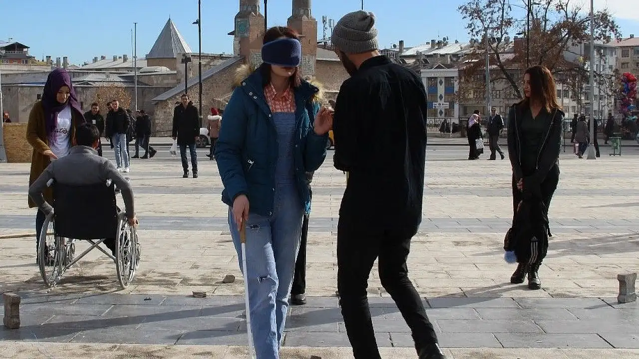 Sivas Cumhuriyet Üniversitesi Toplum Gönüllüleri öğrencileri sağlıklı bireylerin, engelli bireylerin yaşadığı zorlukları anlaması amacıyla engelli empati parkuru oluşturdu.