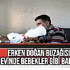 Erken doğan buzağısına evinde bebekler gibi bakıyor