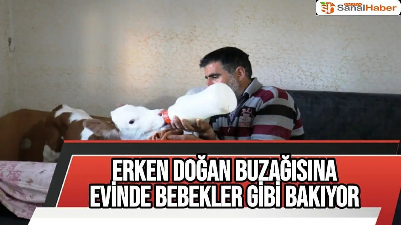 Malatya´da bir çiftçi, 1 ay erken doğan buzağıyı evinin odasında besliyor. Veterinerlerin yaşamaz dediği buzağıyı bebekler gibi büyüten çiftçi, her gün biberonla beslediği hayvanın sağlık durumunun iyi olduğunu söyledi.