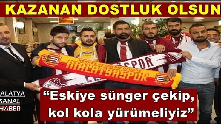 Elazığ’dan nazik bir davet üzerine Malatya’ya geldiklerini ifade eden Narkoz Taraftarlar Derneği Başkanı Mücahit Biçer ise geçmişte yaşanan Malatya- Elazığ kavgalarının nedenini bile unuttuklarını söyleyerek, “Yıllarca neden niçin tribünde kavgalar yaşanmış bugün kimse bilmiyor. 17 yaşında bir genç bile hiçbir Elazığ - Malatya derbisi izlememesine rağmen sosyal medyadan bir şeyler yazıyor. Bakın artık 15 Temmuz ile birlikte Türkiye yeni bir döneme girdi. Ülkemiz içeride ve dışarıda bu kadar düşmanla uğraşırken, iki komşu ilin her türlü iç içe geçmiş iki doğunun kalesi şehrin bir biriyle sadece tribünde atışması kime yarar sağlar? Biz şimdi Malatya’dayız çok güzel ağırlanıyoruz çünkü burası da bizim şehrimiz. Hafta sonu Malatyalılar Elazığ’da olacak ben inanıyorum ki misafirperver, ata kültürüne sahip her Elazığlı da Malatyalı dostlarına kucak açacak. Şimdiden iki takıma da camiaya da başarılar diliyorum” dedi.