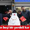 Son yılların en etkili kar yağışı ile karşı karşıya kalan Malatya´da kar sevinci yaşayan esnaf, yaptığı kardan adama beşi bir yerde altın taktı.