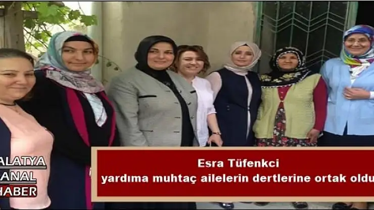 Gümrük ve Ticaret Bakanı Bülent Tüfenkci'nin eşi Esra Tüfenkci Malatya'da yardıma muhtaç aileleri ziyaret ederek, dertlerine ortak oldu.