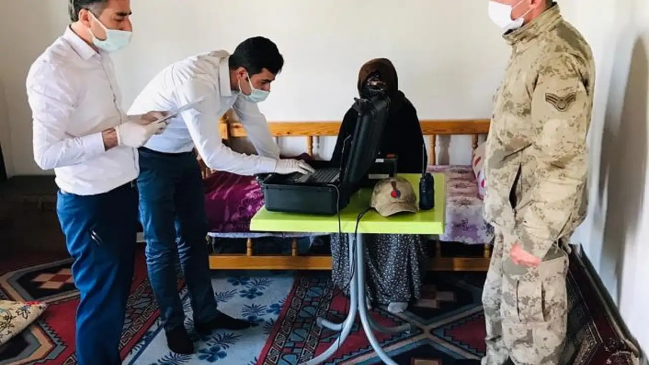 Adıyaman´ın Sincik ilçesine bağlı İnlice Beldesinde ikamet eden Hatun Çok´a Sincik Nüfus Müdürlüğü personeli evinde parmak izini alarak cipli kimlik kartı verdi.