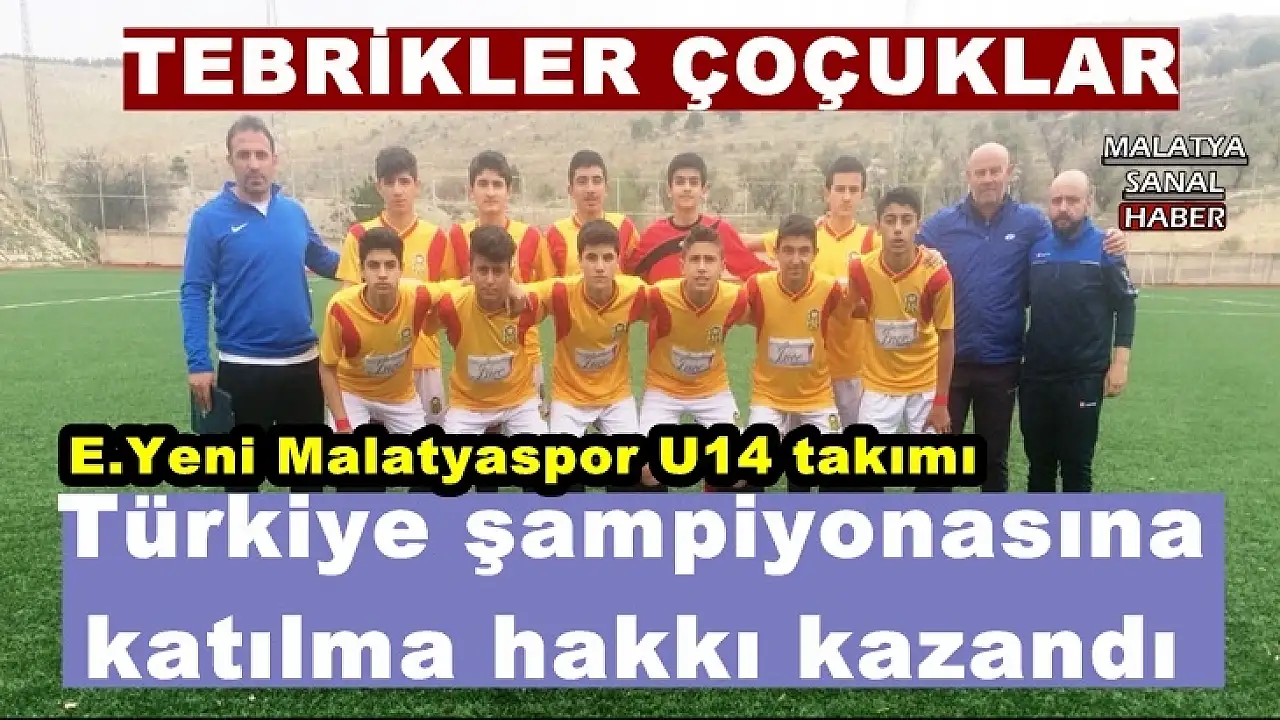 Spor Toto Gelişim Ligi Elit U14 kategorisi 24. hafta müsabakasında sahasında Gazişehir Gaziantep Futbol Kulübü ile karşılaşan Evkur Yeni Malatyaspor U14 takımı Tahir Alpay ve Mehmet Taştan’ın attığı gollerle maçı 2-0 kazanarak, ligin bitimine 3 hafta kala Türkiye şampiyonasına katılma hakkı elde etti.
