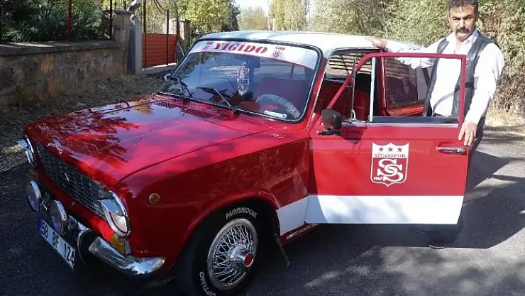 Sivassporlu taraftar İbrahim Karaca, ´Murat 124´ marka otomobilini takımının renklerine boyayarak adeta Sivasspor´un maskotuna dönüştürdü.