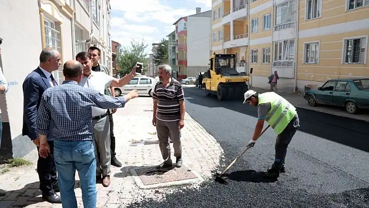Cadde ve ara sokaklarda sürdürülen asfalt çalışmalarını yerinde inceleyen Belediye Başkanı Sami Aydın ise Başkan Yardımcısı Hasan Karaman ve yetkilerden bilgi alarak çalışanlara kolaylıklar diledi.