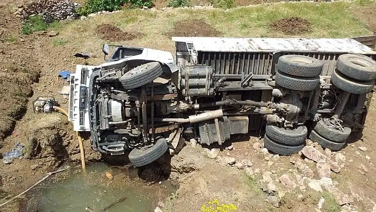 'Freni boşalan kamyon şarampole yuvarlandı'