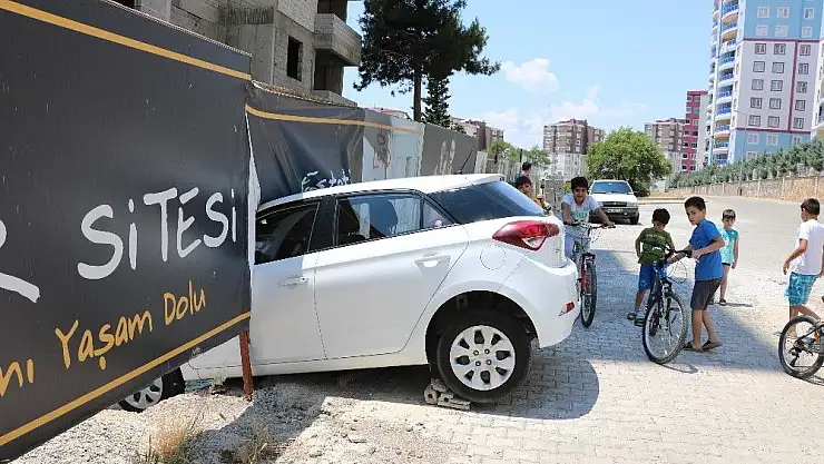 Kahramanmaraş’ta park halinde iken freni boşalan ve yokuş aşağı ilerleyen otomobil, 100 metre sonra karşısına çıkan inşaat güvenlik duvarına çarparak durabildi.