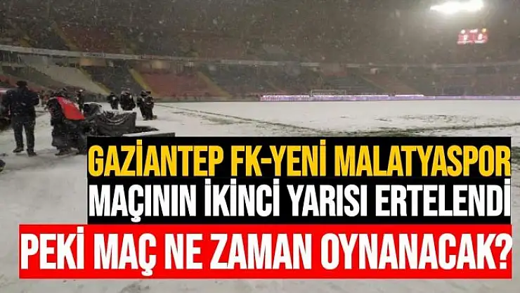 Gaziantep FK-Yeni Malatyaspor maçının ikinci yarısı yoğun kar yağışı nedeniyle 19 Ocak 2020 Çarşamba günü saat 17.00'ye ertelendi.