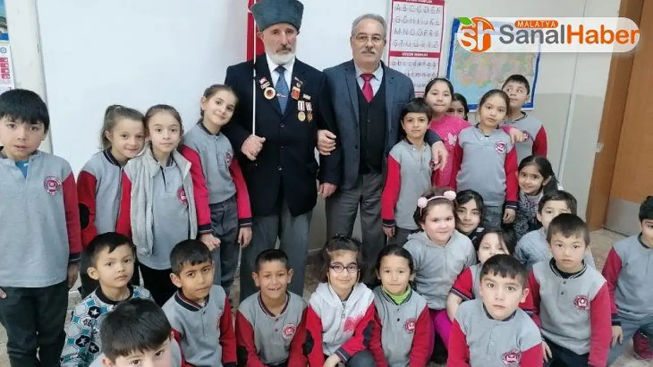 Minik öğrencilerle buluşan gaziler, ülkenin bağımsızlığında verilen mücadelelerin cephedeki şahitleri olarak öğrencilere yaşadıklarını aktarıyor.