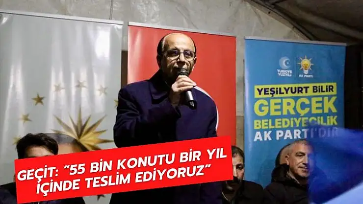 Yeşilyurt ilçesine bağlı Kuyulu mahallesi sakinleri ile bir araya gelen AK Parti Yeşilyurt Belediye Başkan Adayı Prof. Dr. İlhan Geçit, Yapımı tamamlanan konutlarımızı teslim ettik. Cumhurbaşkanımızın ve Çevre ve Şehircilik Bakanımızın sözü var. 55 bin konutu bir yıl içinde teslim ediyoruz. Bizim tek derdimiz var, oda vatandaşımıza hizmet etmek dedi.