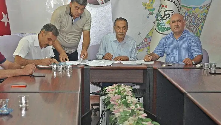 2018 yılı Gölbaşı Belediyesi Toplu İş Sözleşmesi Belediye Başkanı Yusuf Özdemir, Adıyaman Hizmet İş Sendika Şube Başkanı Mahmut Doğan, Hak-iş Konfederasyon Genel Başkan Yardımcısı Zekeriya Koca ve iş yeri temsilcisi Mehmet Solak’ın katılımıyla gerçekleştirildi.