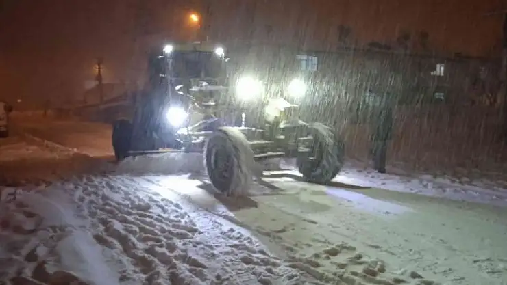 İlçe merkezinde başta ana yollar olmak üzere tüm mahallelerde çalışma yapan ekipler, tuzlama ve solüsyon uygulamalarına gece boyunca sürdürecek.