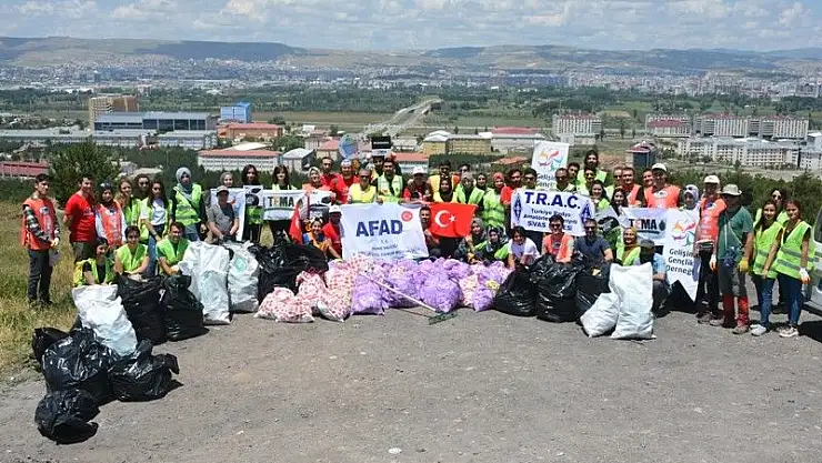 Sivas’ta gönüllü 100 kişi ormanlık alanda 3 saatte 100 torba çöp topladı