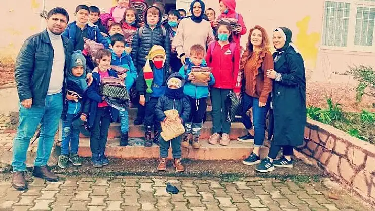 Kahramanmaraş´ta bir grup gönüllü, kırsal kesimde yaşayan çocuklara bot, mont ve atkı-bere hediye etti.