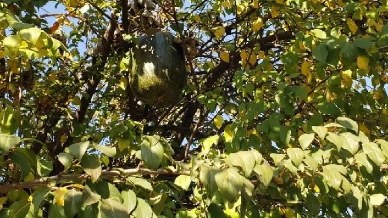 'Görenler gözlerine inanamadı, 10 kiloluk kabak ağaçta yetişti'