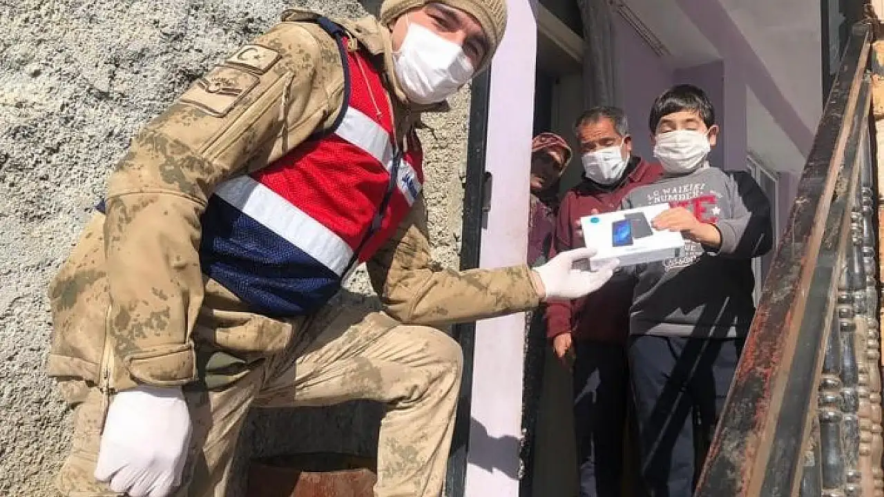 Adıyaman´ın Çelikhan ilçesinde polis ve jandarma ekipleri öğrencileri evlerinde ziyaret ederek, tabletleri hediye ediyor.