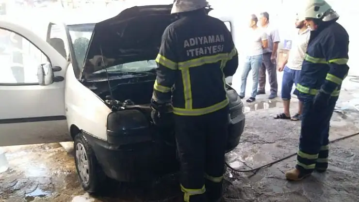 Adıyaman´da, sürücüsü tarafından pak edildikten kısa bir süre alev alev yanan hafif ticari araç paniğe neden oldu.