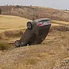 Adıyaman´ın Gölbaşı ilçesinde hafif ticari araç ile çarpıştıktan sonra kontrolden çıkan otomobil takla atarak ters döndü.