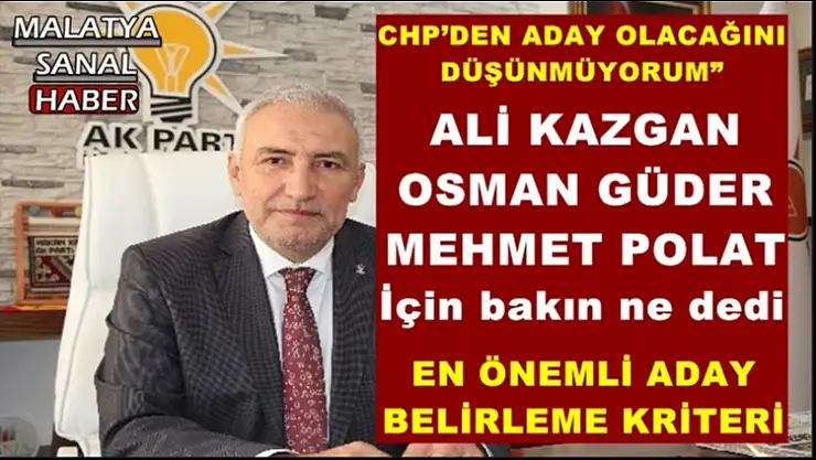 Akçadağ Belediye Başkanı Ali Kazgan AK Partili belediye bakanı iken bağımsız belediye başkanı olarak adaylığını açıklamıştı. Bu konuya değin Milletvekili Hakan Kahtalı, “Akçadağ bizim için çok önemli bir ilçe. Akçadağ Malatya’ya en yakın olan nüfus olarak Da Doğanşehir’den sonra en çok vatandaşımızın yaşadığı bir ilçemiz. Orada da Cumhurbaşkanımıza olan sevdayı ben biliyorum. Akçadağlı hemşerilerimiz AK Parti’nin adayı ile hareket edecektir. Ali Beyin de bu kararından geri döneceğini düşünüyorum” sözlerini kaydetti.
