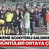 Tribünlerden sahaya atılan scooterın yardımcı hakem Hakan Başkurt’a isabet ettiği anlar ise bir taraftarın cep telefonu kamerasına yansıdı.