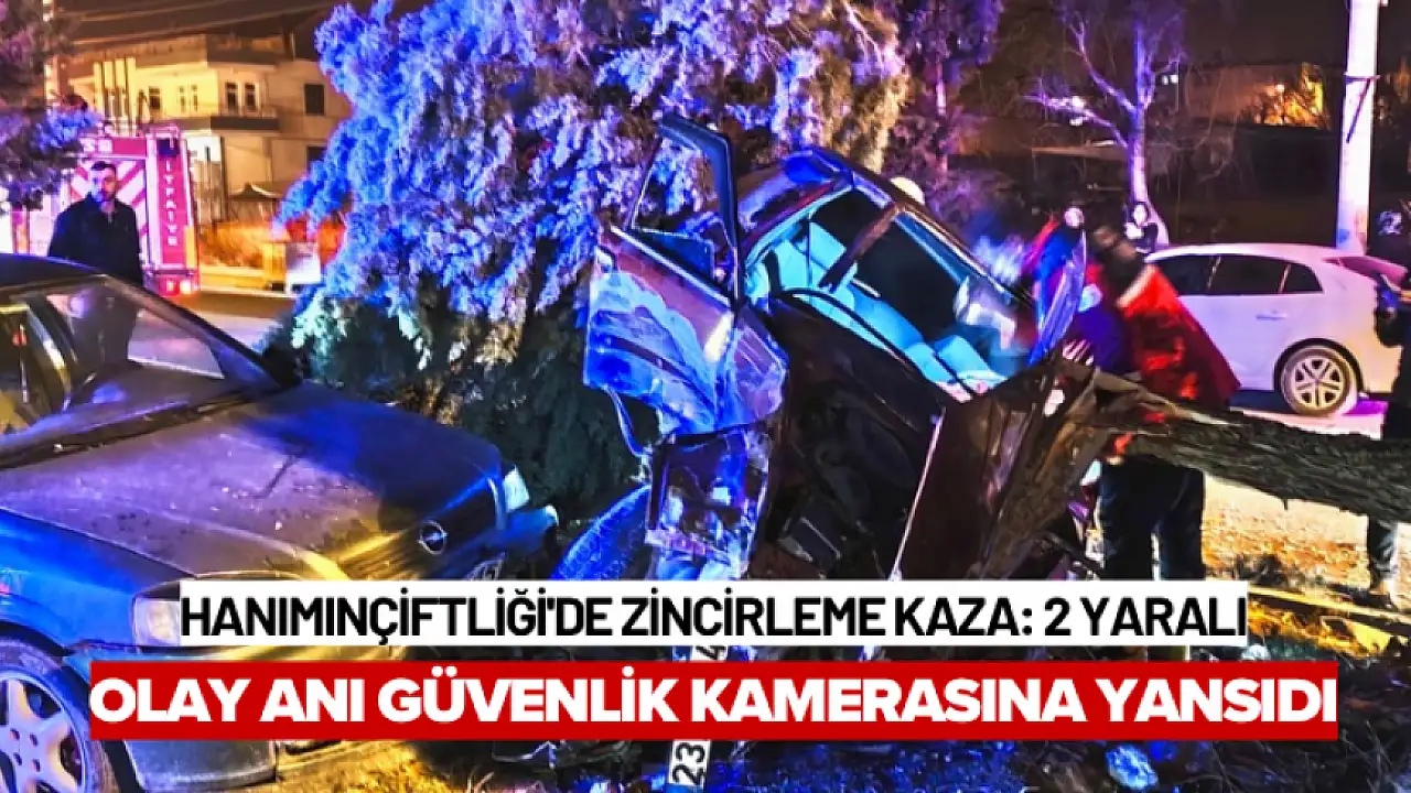 Hanımınçiftliği Mahallesi'nde 3 aracın karıştığı zincirleme kazada iki kişi yaralandı olay anı güvenlik kamerasına yansıdı.