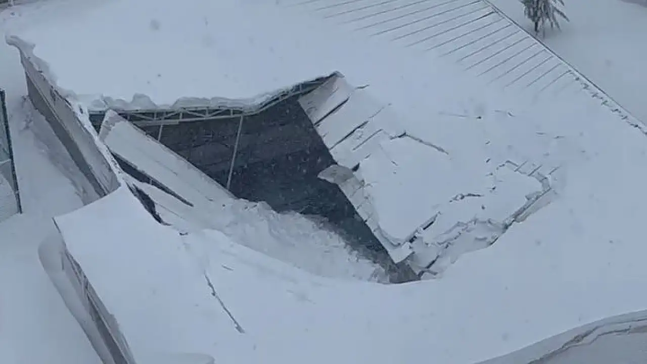 Adıyaman´da, üzerindeki karın ağırlığına dayanamayan kapalı yüzme havuzu çatısının çökme anı saniye saniye kameralara yansıdı. Havuz bölümünden çıkan site görevlisi canını saniyelerle kurtardı.