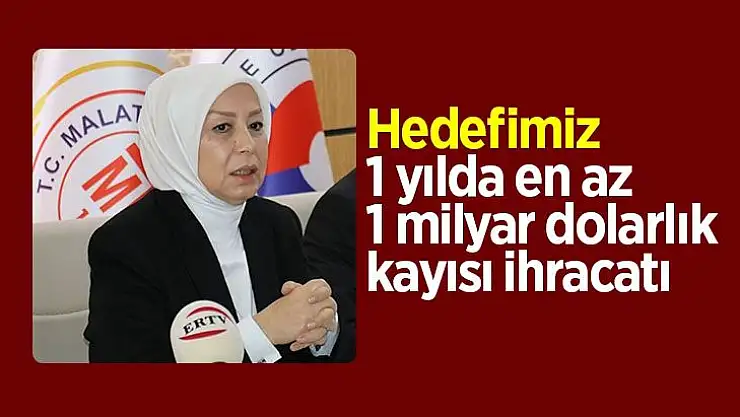 Malatya Ticaret Borsa´sını ziyaret eden Ak Parti MKYK üyesi ve Malatya Milletvekili Öznur Çalık, " Bizim temel hedefimiz 5 yılda değil 1 yılda en az 1 milyar dolarlık kayısı ihracatını yapabilir seviyeye getirmek" dedi.