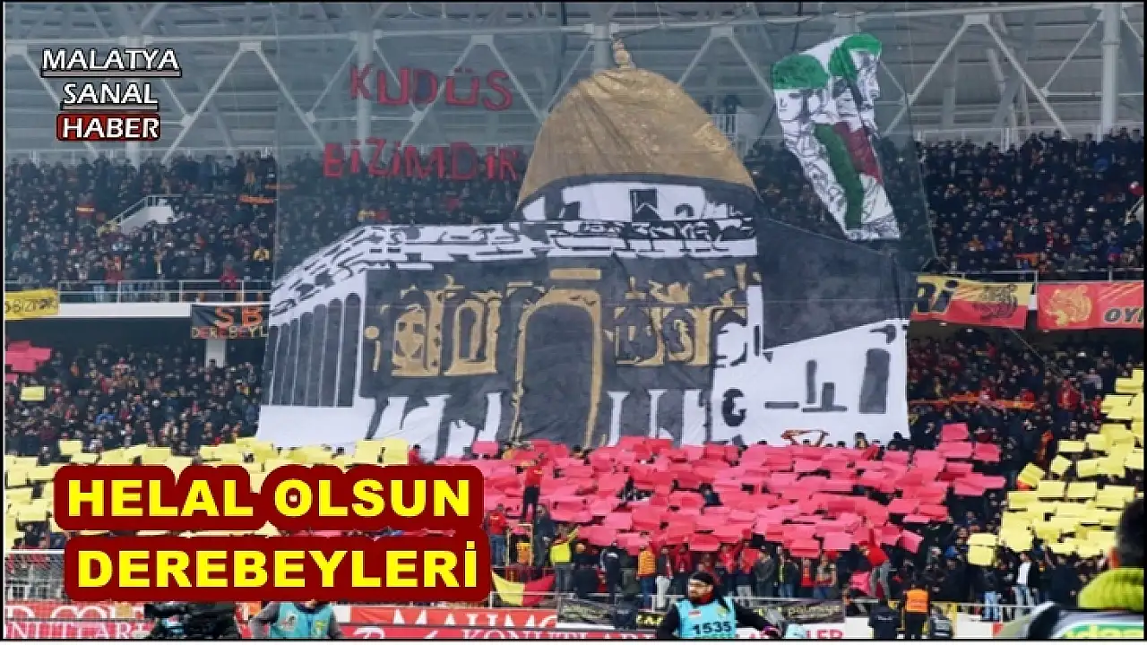 Yeni Malatyaspor taraftarı, Galatasaray maçı öncesi "Kudüsbizimdir" sloganıyla Mescid-i Aksa'nın resminin bulunduğu koreografi yaptı.