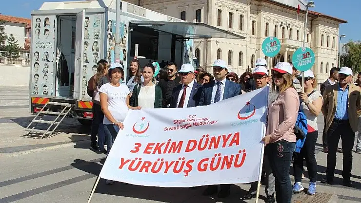 Sivas’ta İl Sağlık Müdürlüğü tarafından 3 Ekim ’Dünya Yürüyüş Günü’ dolayısıyla ’Her gün on bin adım’ sloganıyla yürüyüş düzenlendi.