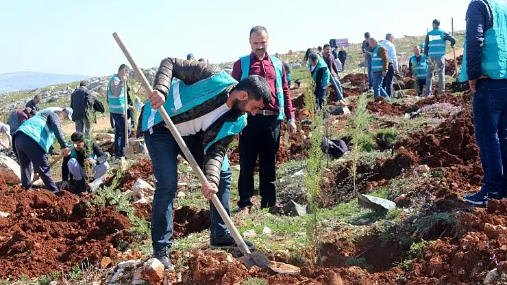 Adıyaman Açık Ceza İnfaz Kurumu Müdürü Naci Bilmez ve personel 90 dönümlük alana 57 hükümlü ile birlikte ilk etapta 500 fidan dikti.