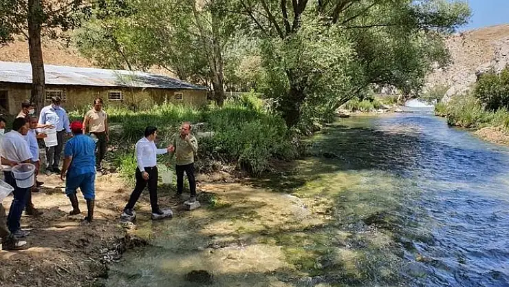 Sivas´ın Gürün ilçesine bağlı Akdere köyünde, Hurman Çayı´na 10 bin 500 kırmızı benekli alabalık yavrusu bırakıldı.