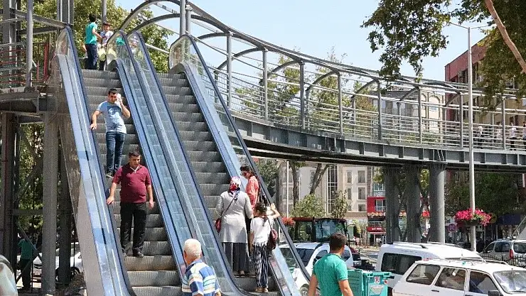 Atatürk Bulvarı üzerinde iki ilçeyi birbirine bağlayan yürüyen merdivenli üst geçit, yoğun trafik nedeniyle yolun karşısına geçmekte zorluk çeken vatandaşlar için büyük kolaylık sağlayacak.