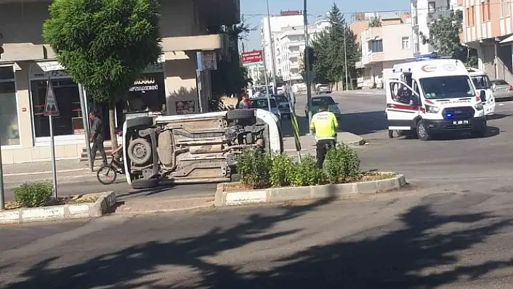 Adıyaman´da, otomobille çarpıştıktan sonra taklalar atarak yan yatan otomobilin sürücüsü yaralandı.