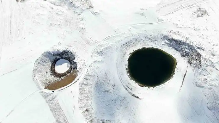 'İlginç manzara, yan yana olan göllerin biri dondu diğeri donmadı'