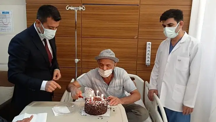 Hastane Yöneticisi Doç. Dr. Fatih Doğan, "Murat amcayı rahatsızlığı nedeniyle hastanede takip ediyoruz. Bugün doğum günüymüş. Kendisine sürpriz yapmak için ziyaret ettik" ifadelerini kullandı.